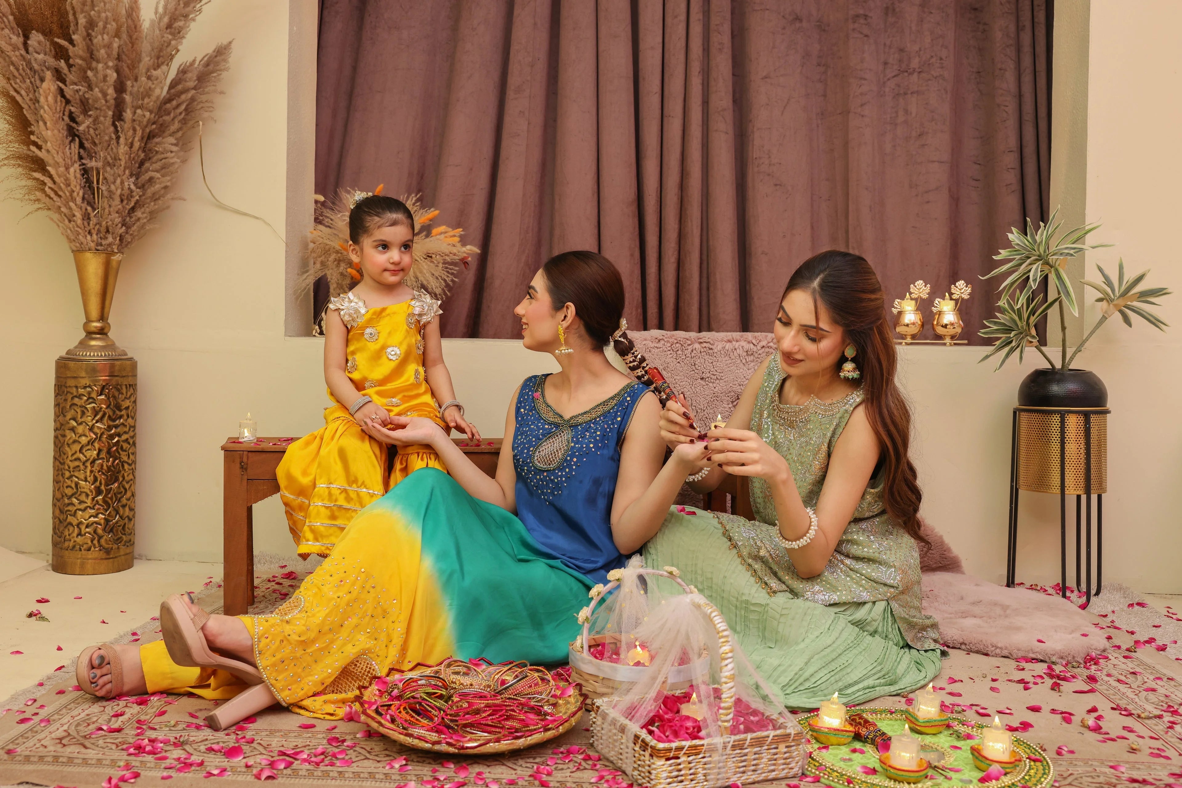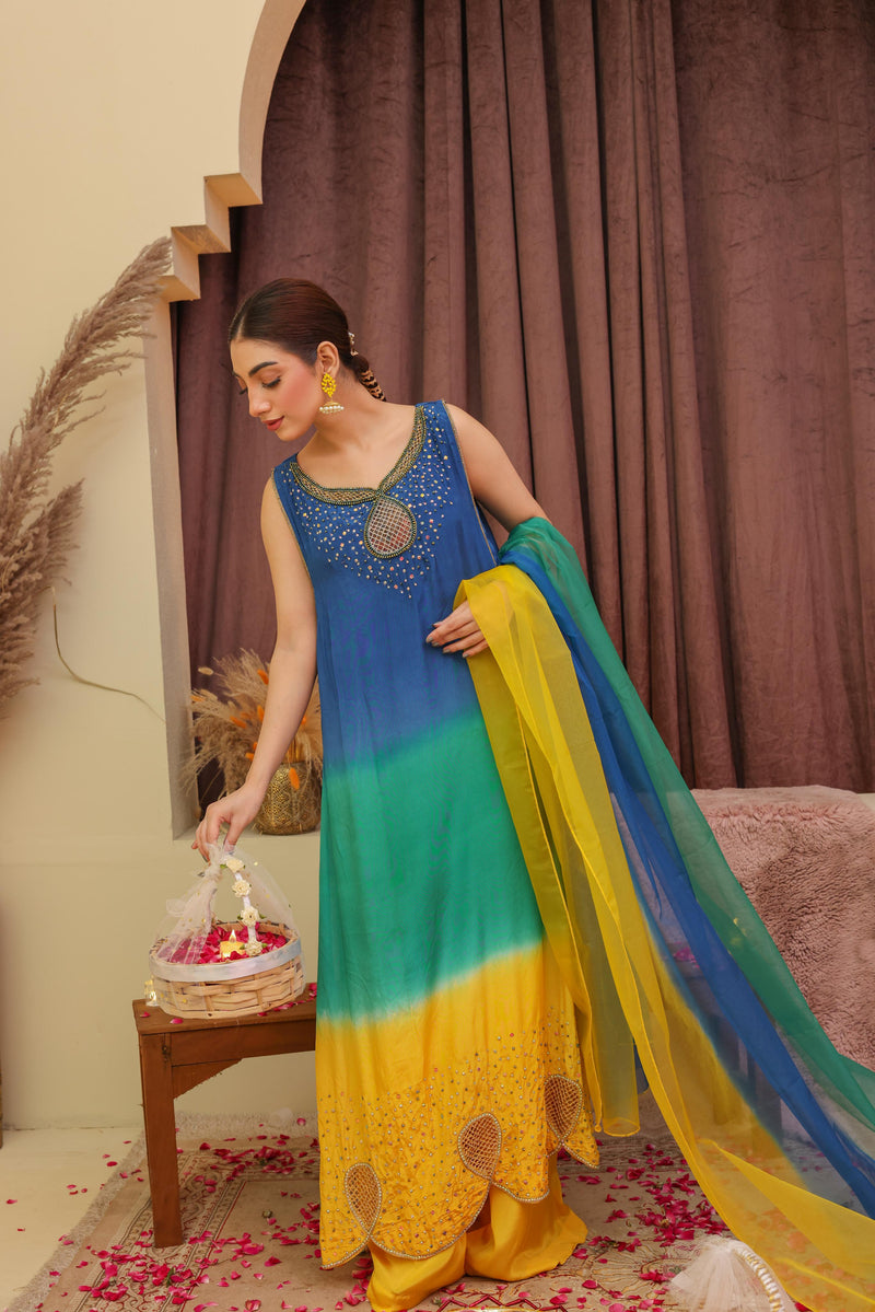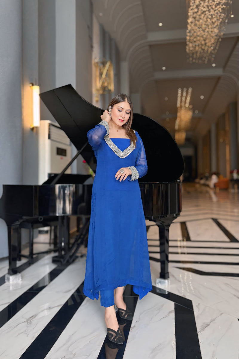 I am completely satisfied with this dusky pink dress from Nuqat. The handwork on the neckline and sleeves is beautifully done and looks very elegant. The full-flare trouser adds a graceful flow and make the outfit stand out. The color is soft yet classy, perfect for festive and formal wear. Overall, the quality and design exceeded my expectations.